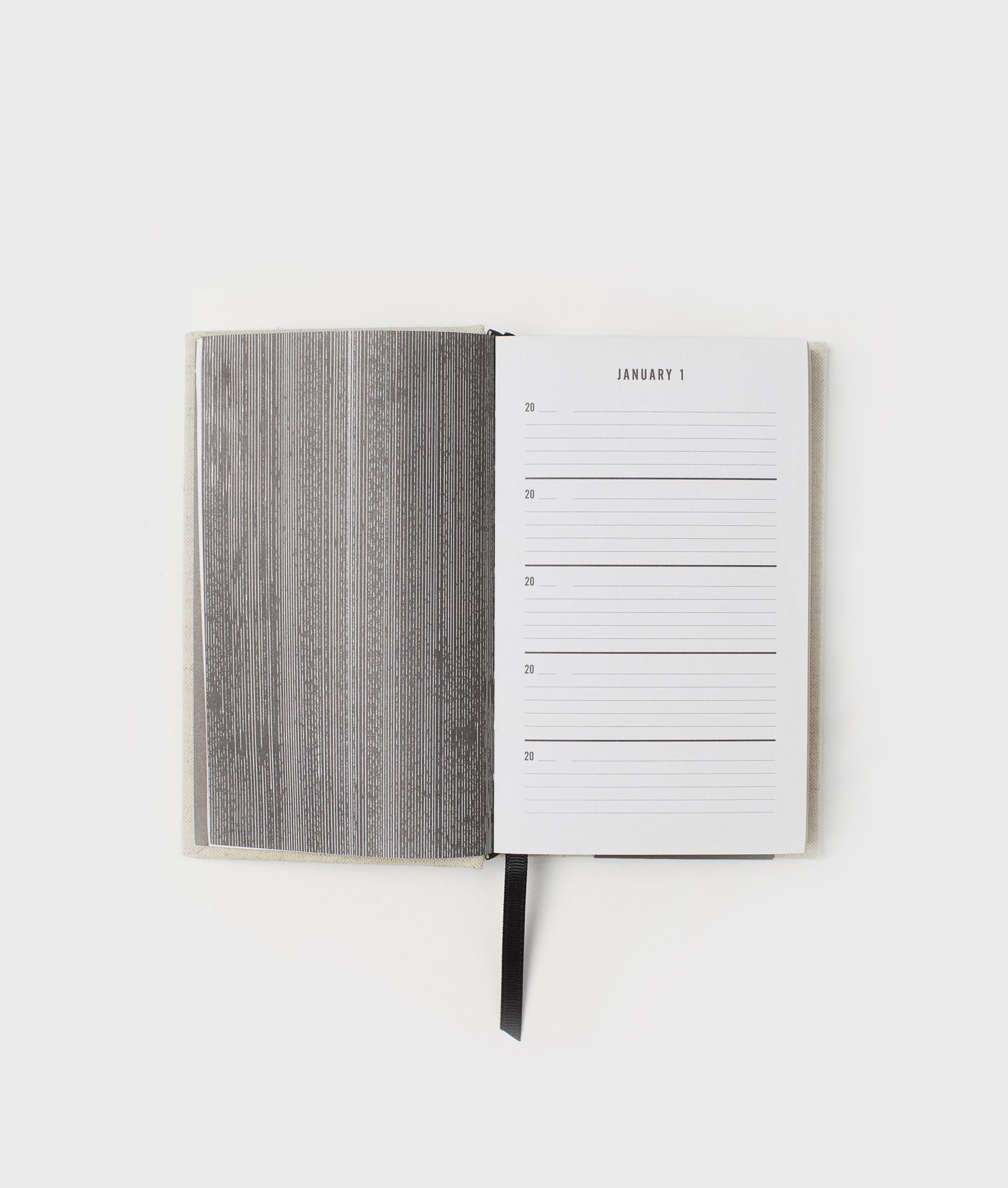 A clean, modern, and sophisticated multi-year hardcover journal. Expand your journaling with this five-year memory book journal. Jot down ideas or highlights one page for every day and compare your entries to the same date in year past in this notebook. This small handsome book features a rich oatmeal-colored, canvas cloth case, striking metallic page edges, and a ribbon page maker and one line for every day. The perfect gift for graduates, adventurers, dreamers, and anyone embarking on a new phase of life. A note from our creative director Barbara: This books helps with self-love. It’s about taking a moment for yourself, standing still, becoming aware. Writing one line a day will help already. See it as a meditative moment, a ritual. Myon and I both have our rituals every day. Dimensions: 16.5 cm x 10.3 cm x 3.3 cm. Number of pages: 372.|