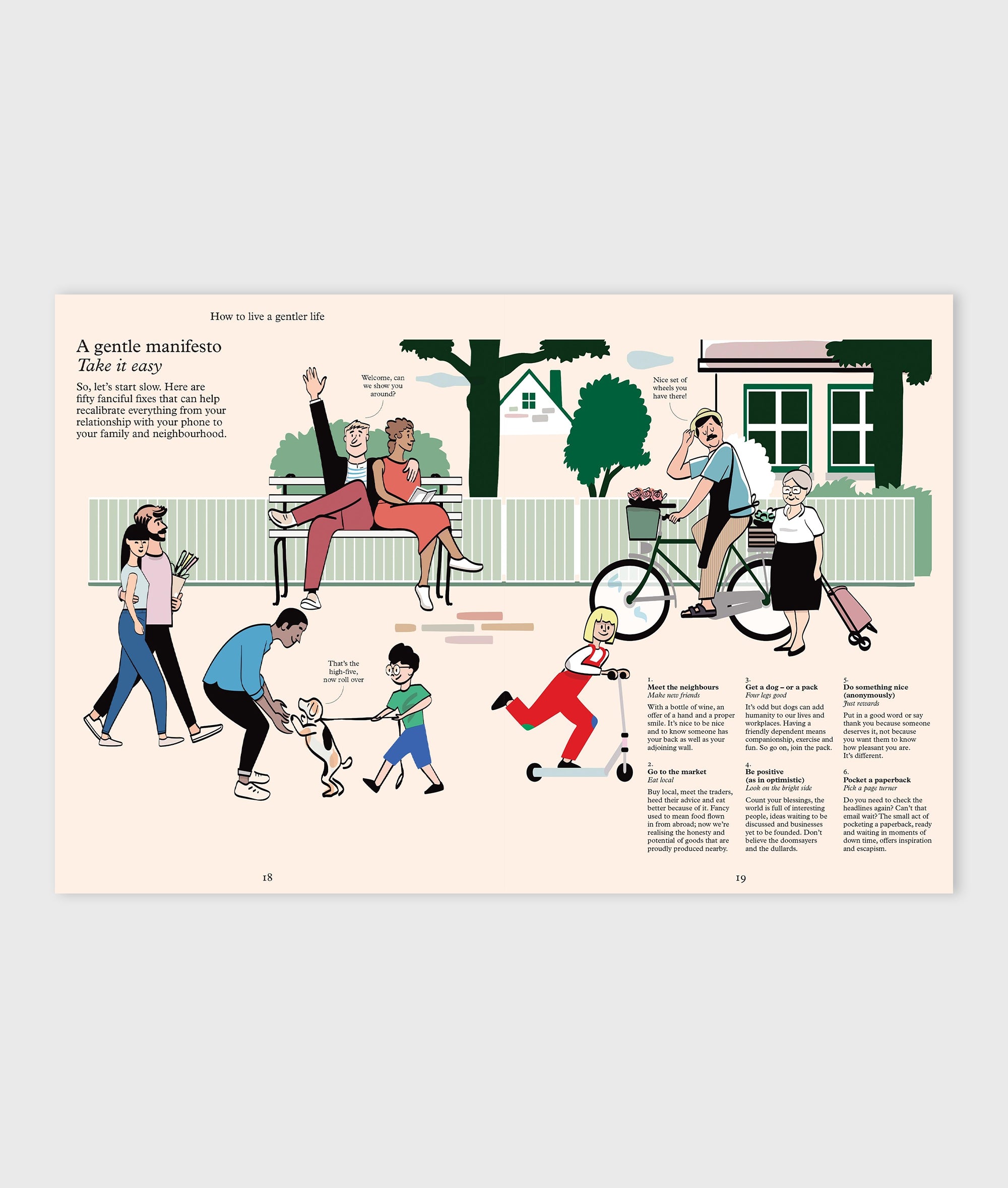 A hardcover guide to slowing down, enjoying more and being happy. Monocle has always been a champion of taking it slow. It has encouraged readers to dive into a lake and go for a run. To sleep well. To eat food whose makers are proud of its provenance. In a shouty, jabbing-finger moment in history, it has done its bit to argue for a new modern etiquette to be generous with our time, hospitality, and forgiveness. Now its editors and correspondents have brought all of this together in The Monocle Manifesto For a Gentler Life, a book that urges us all to slow down, reconnect, make good things and see nice places. A note from our creative director Barbara: This book stands close to the values that myon and I find important in our lives. Take a moment to step back every now and then to see the big picture again. Pay some attention to yourself with healthy eating, exercise, massages… it’s all about self-love and being proud! Dimensions: 24 cm x 19 cm x 2.5 cm. Number of pages: 304.|