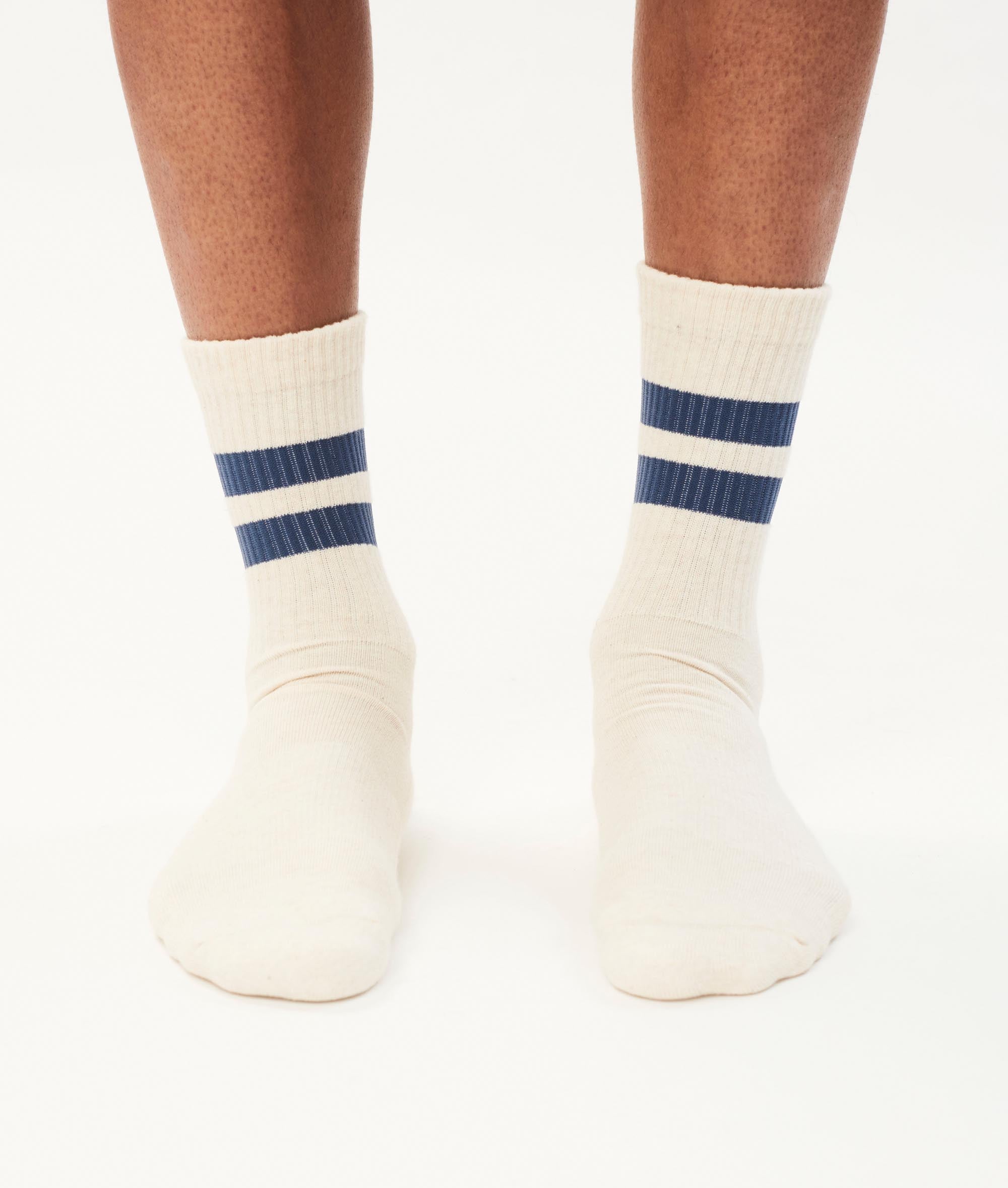 Socks as socks should be. Super soft and with two sporty stripes. Made from a cotton blend. Extra thick and mid length.|