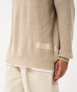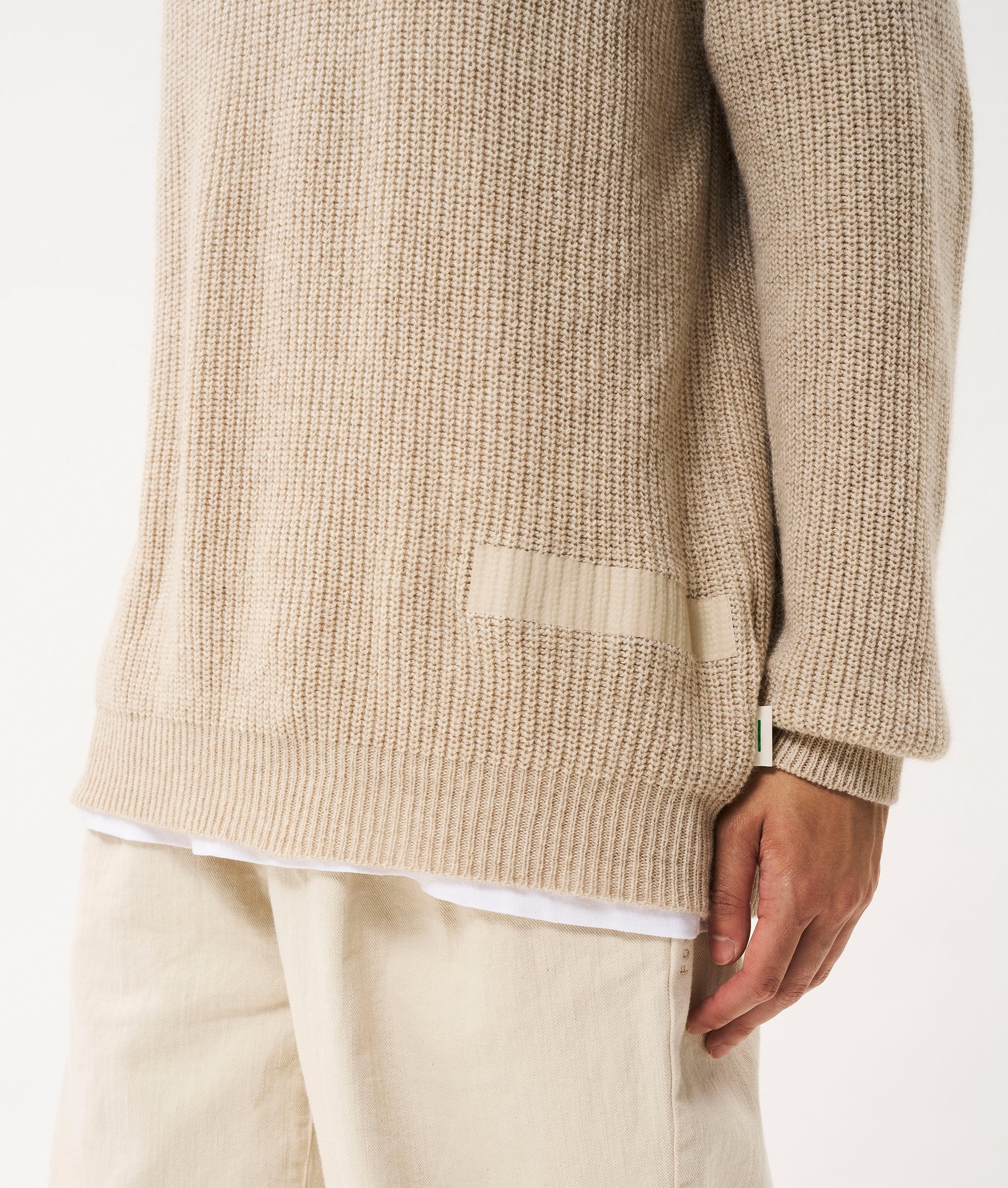 Relaxed fit knitted sweater, made from a cashmere wool blend. The jumper features rib knitted edges, a big stripe waterprint on the front of the sweater, a ‘T-D’ embroidery at the bottom of the left sleeve and a ‘FOR HUMANS’ embroidery on the back.|