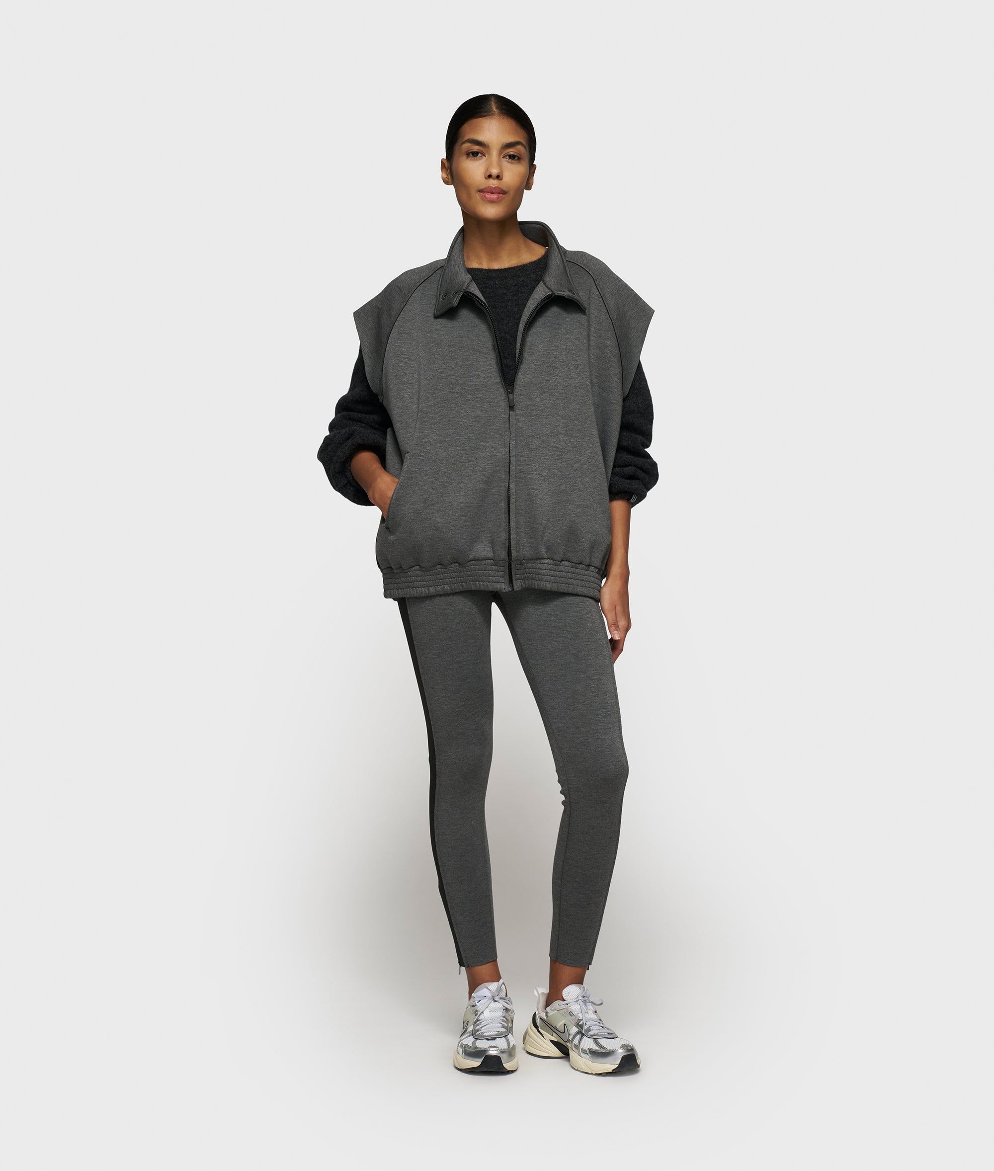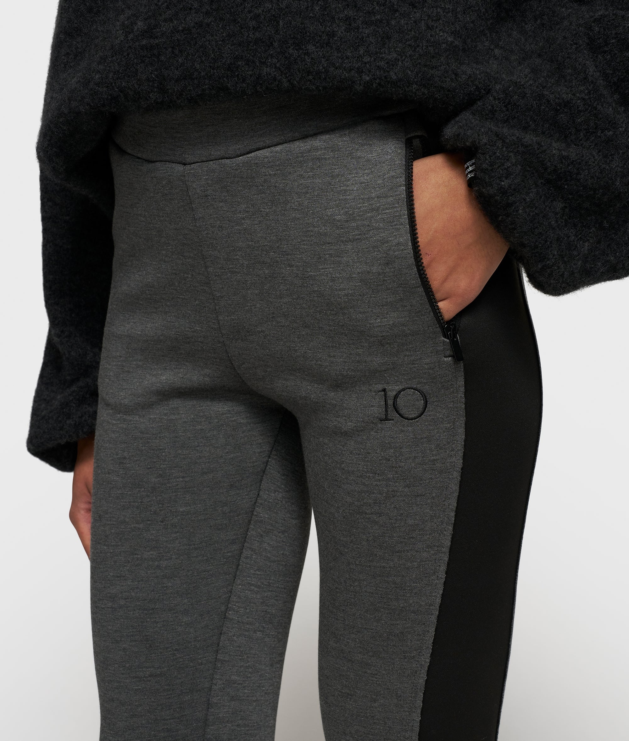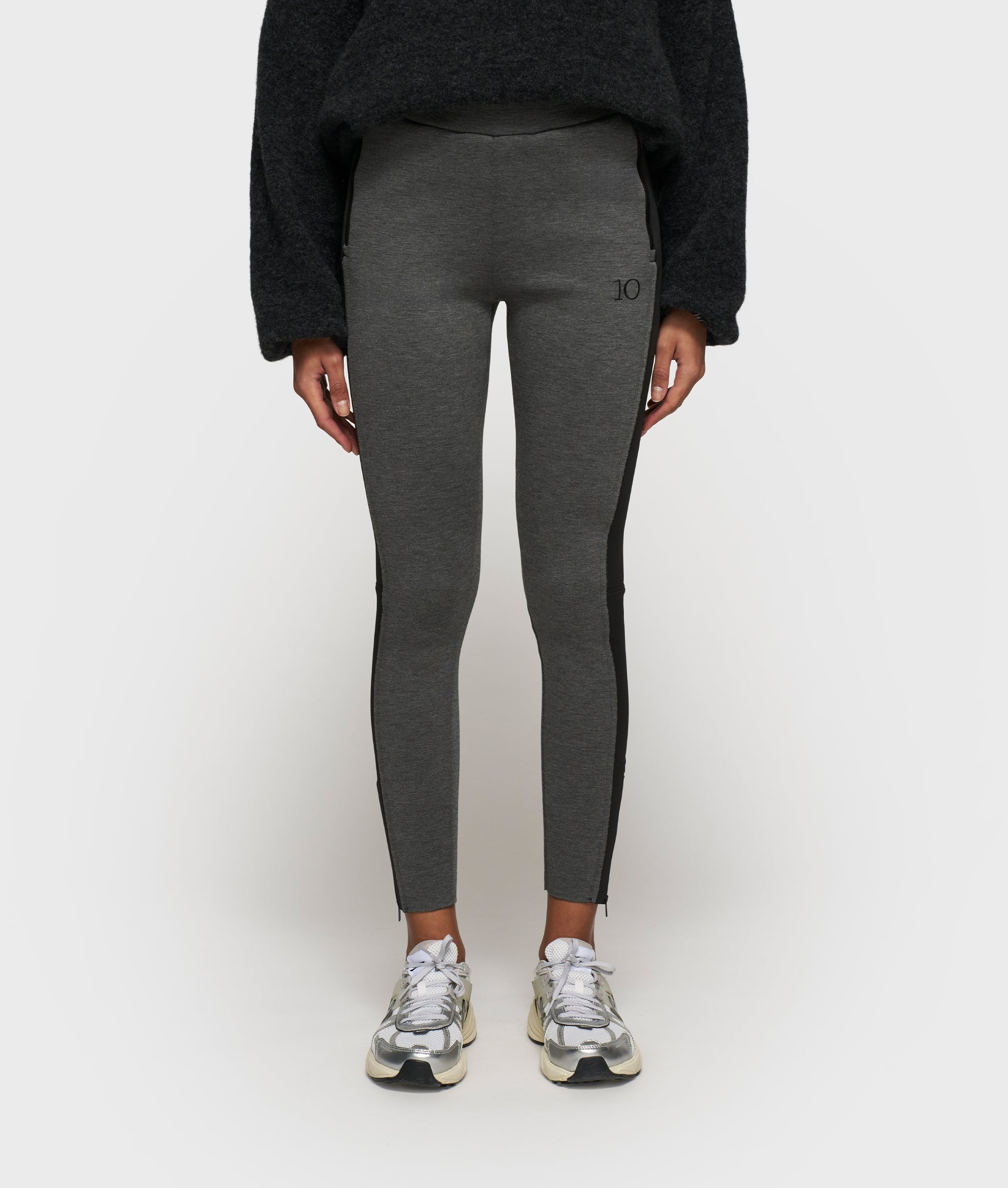 Slim fit stretch scuba leggings. Features zipped pockets, ankle zippers, raw edge leg hems and a ’10’ monogram embroidery below the left zip pocket.|