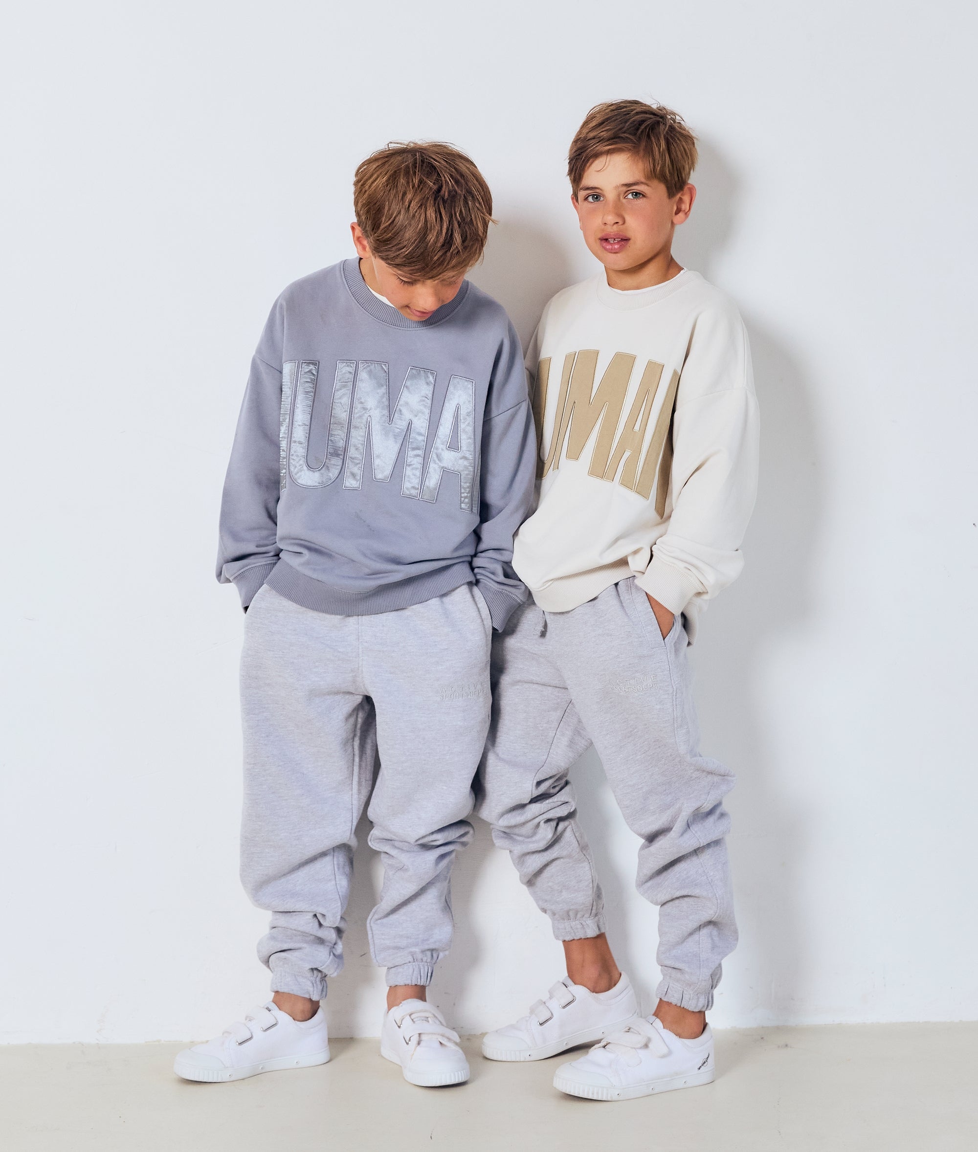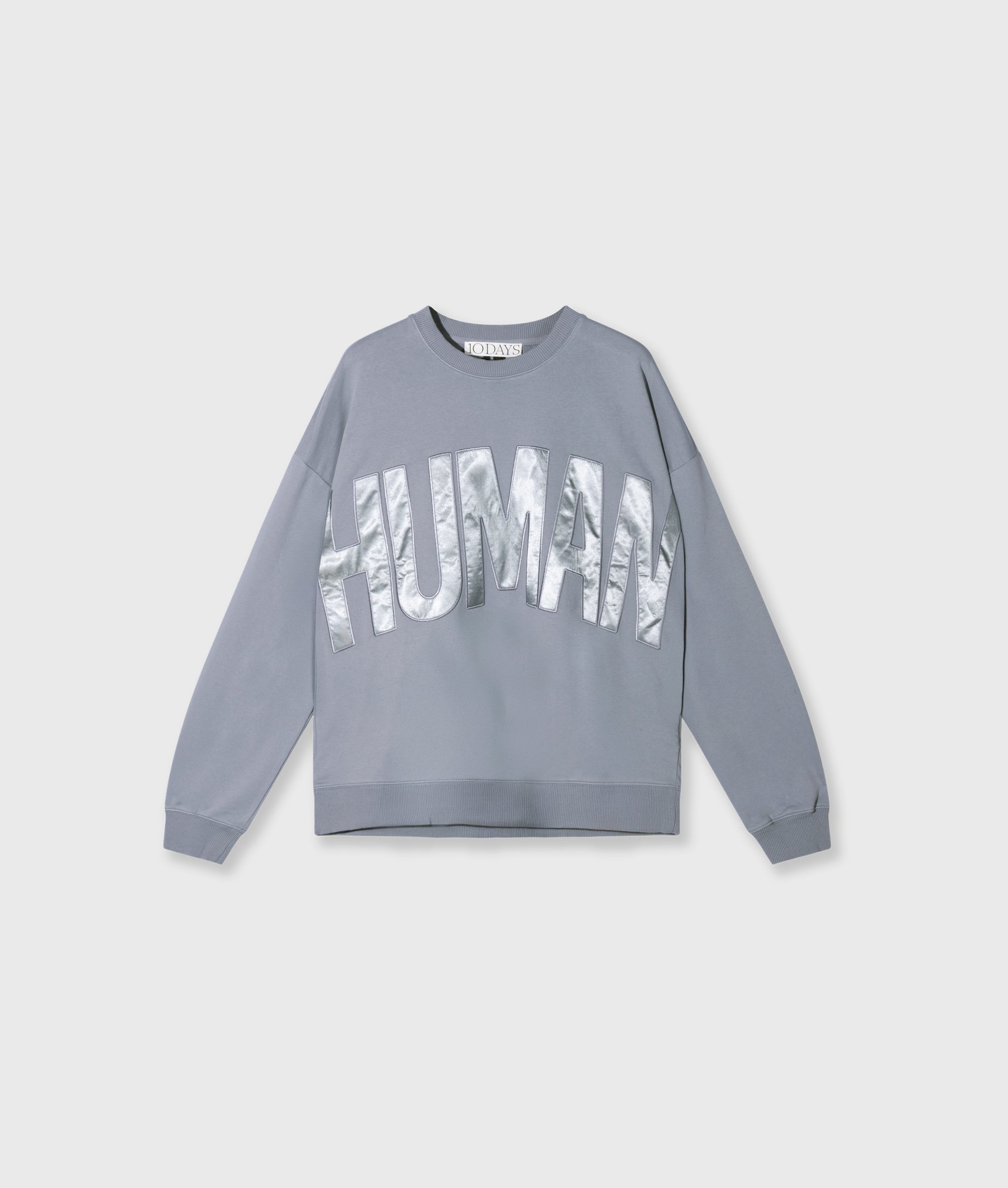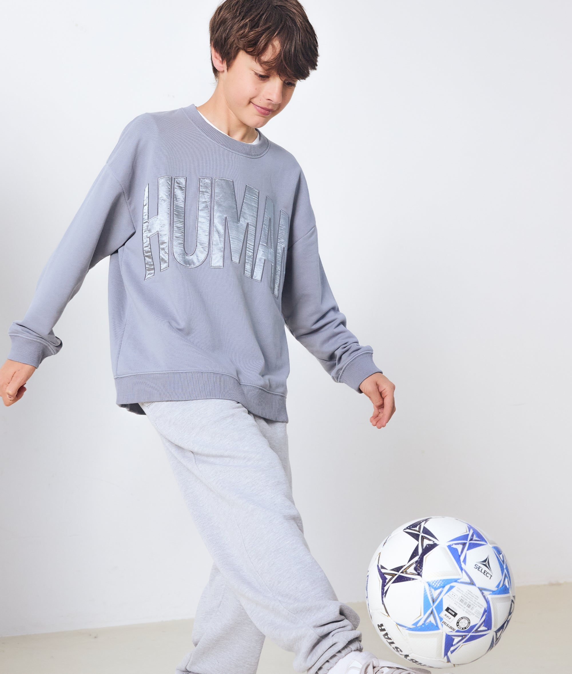 The New oversized fit kids HUMAN sweater with raglan sleeves, ribbed cuffs, a satin HUMAN patch on the chest and a ’10’ monogram embroidery on the back. Made of soft old school fleece. Unisex, for young and old. Because, we’re all Human.|