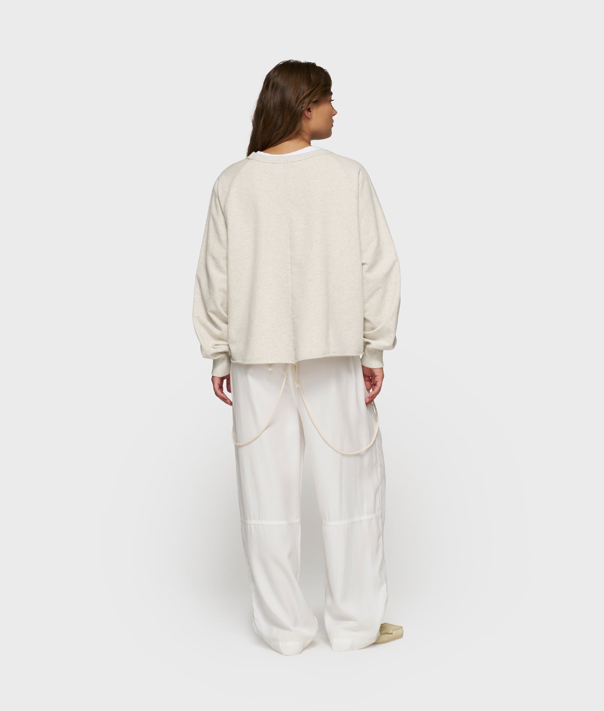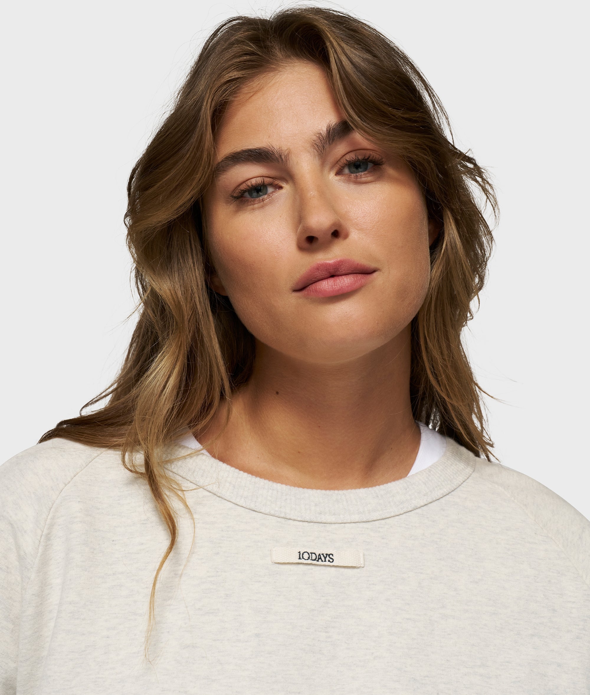 Relaxed fit sweater made from GOTS-certified organic cotton. Designed with raglan sleeves, a raw edge hem, monogram embroidery on the sleeve, a 10DAYS label on the chest and piping in the side seams.|