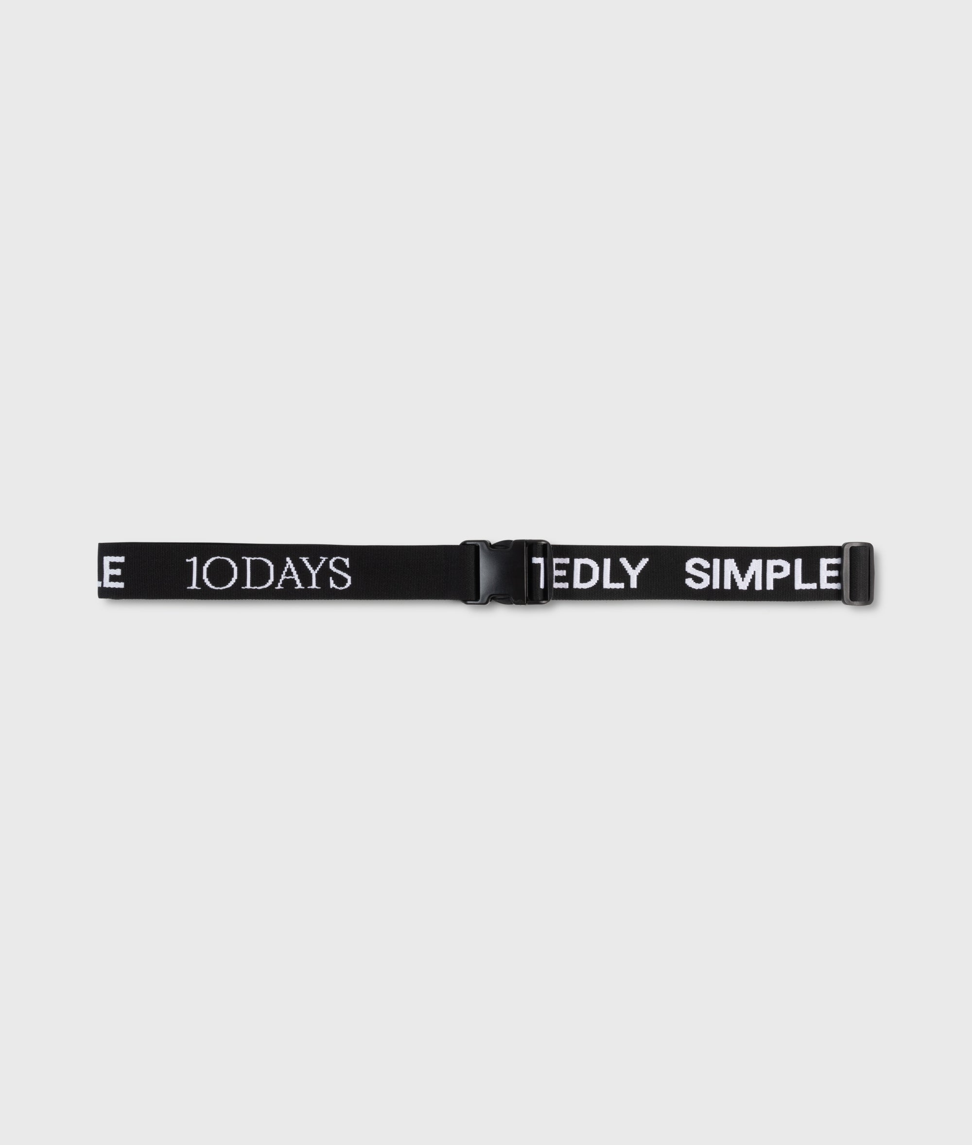 Adjustable luggage strap with 10DAYS UNEXPECTEDLY SIMPLE print. Features a clip closure. Make a statement, wherever you go. Total length belt: 165 cm. Width: 5cm.|