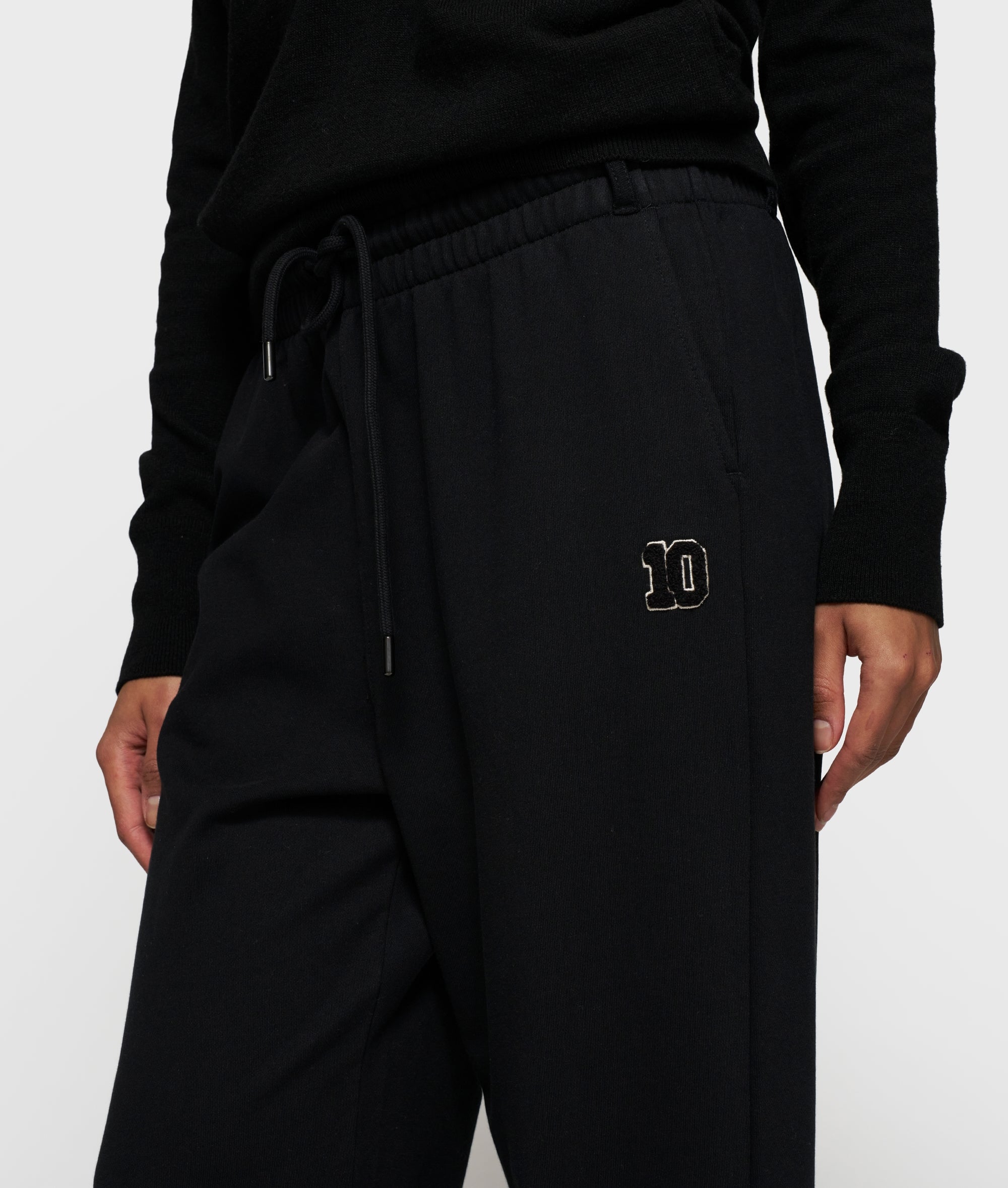 Relaxed fit mid jogger made from soft cotton. Features an elasticated waistband with drawstring, slanted side pockets, elasticated cuffs around the ankles, a patch back pocket and a ’10’ mini patch under the left side pocket.|
