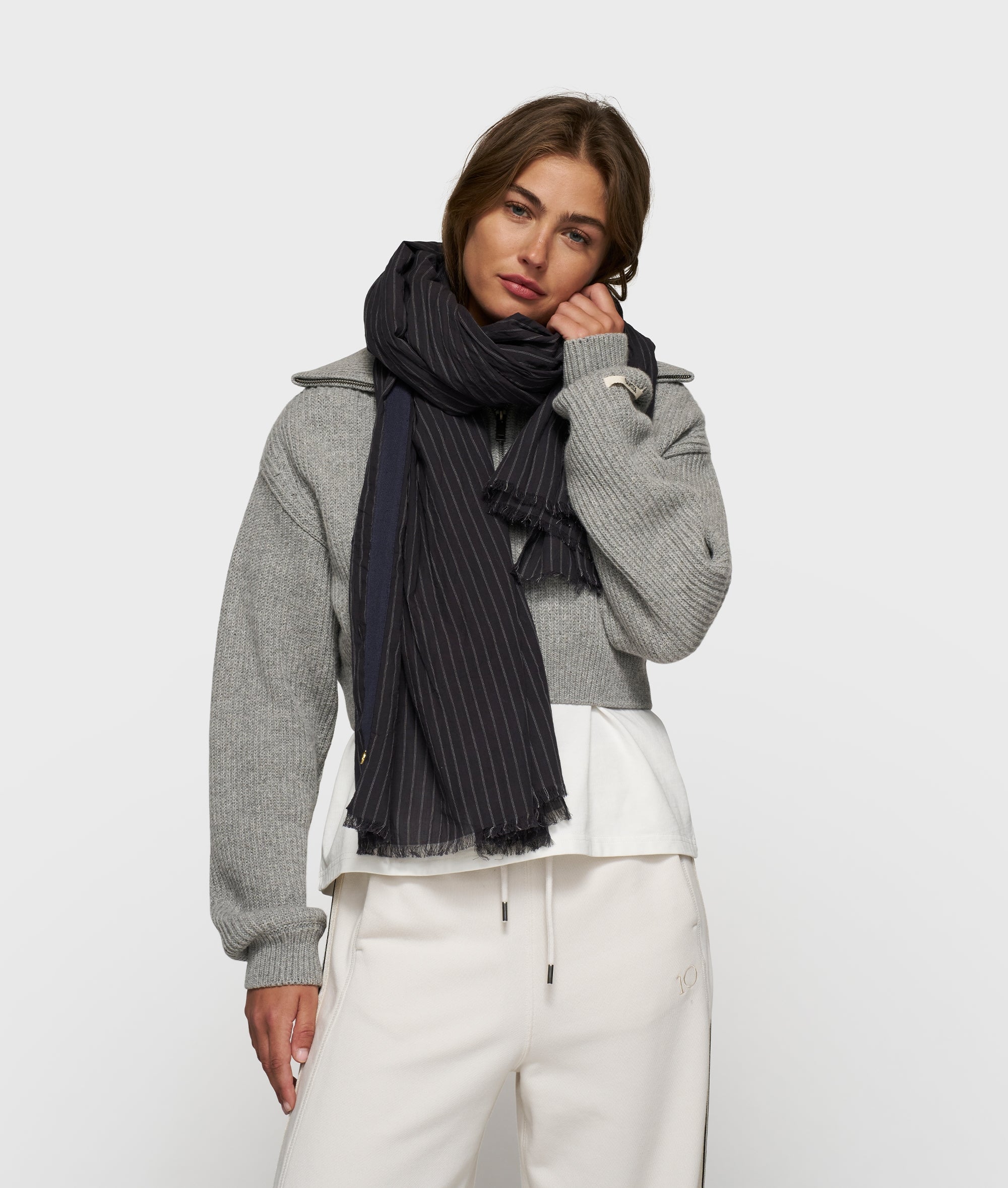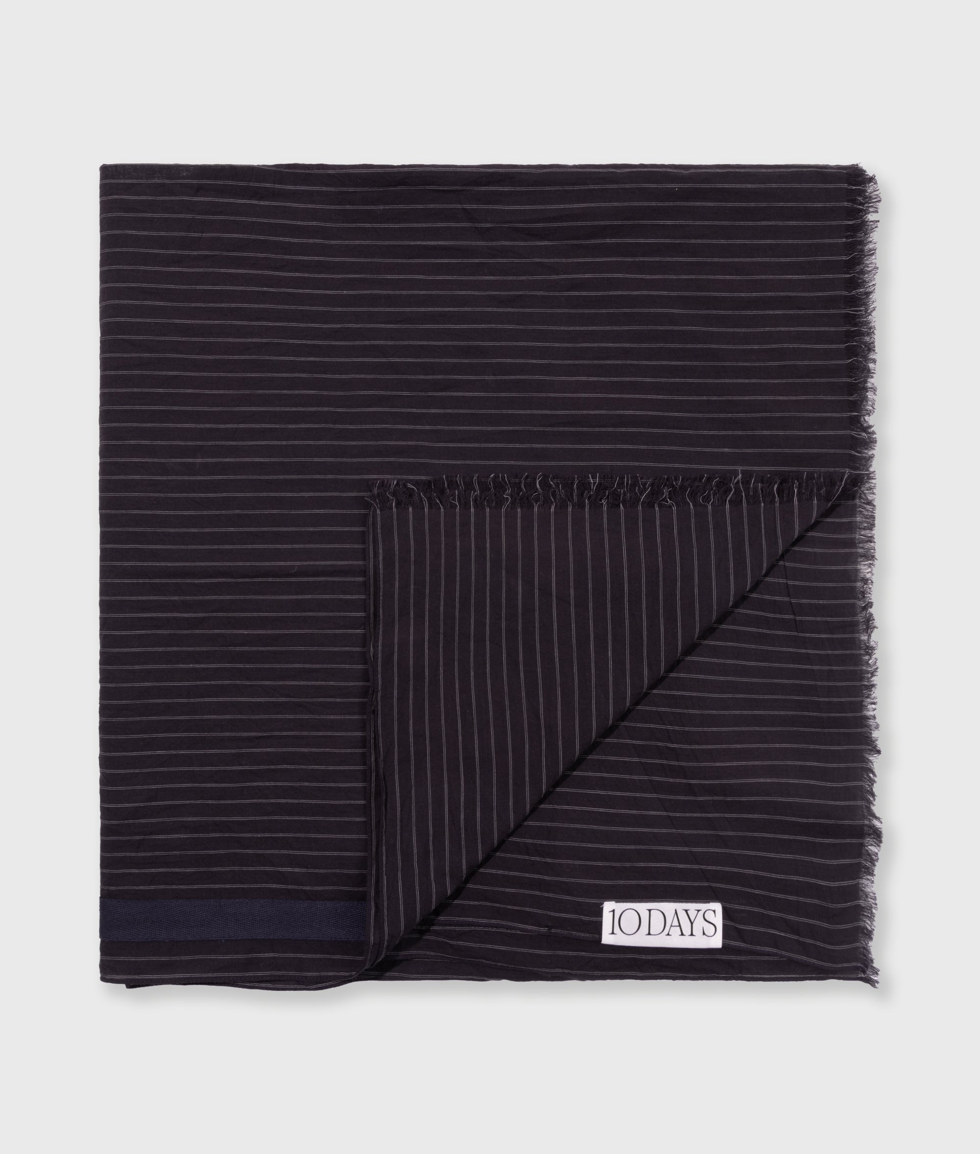 Rectangular pinstripe scarf, made from soft cotton. Features raw edges, a tape detail along one hem and a ’10DAYS’ label along the edge. Size: 100 x 200 cm.|