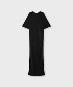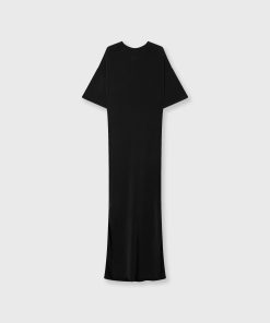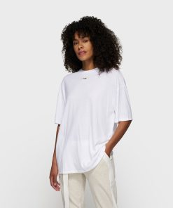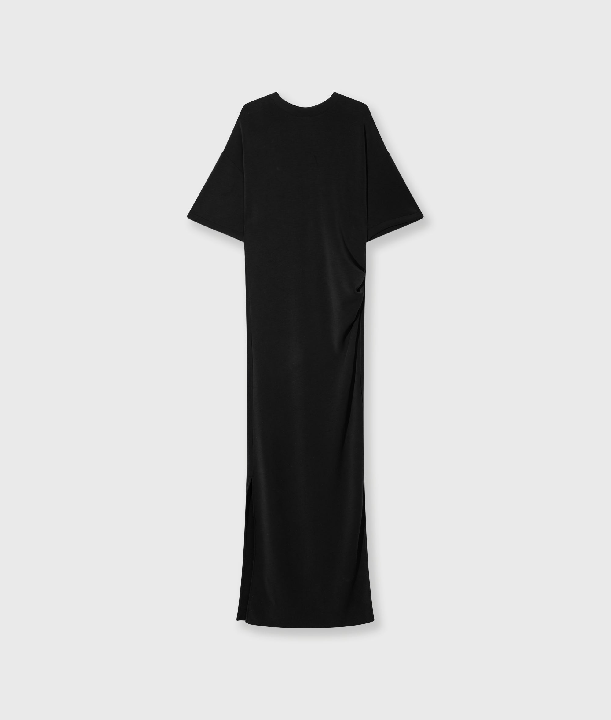 Regular fit midi T-shirt dress made from super-soft modal polyester blend. Features a pleat detail at the left side, side hem slits, and a ’10’ monogram foil print at the back.|