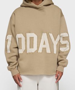 Relaxed fit statement hoodie, made from a cotton and polyester blend. Features a large 10DAYS logo patch on the sleeves and front body, a hood, ribbed cuffs and a raw edge hem.|