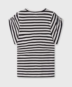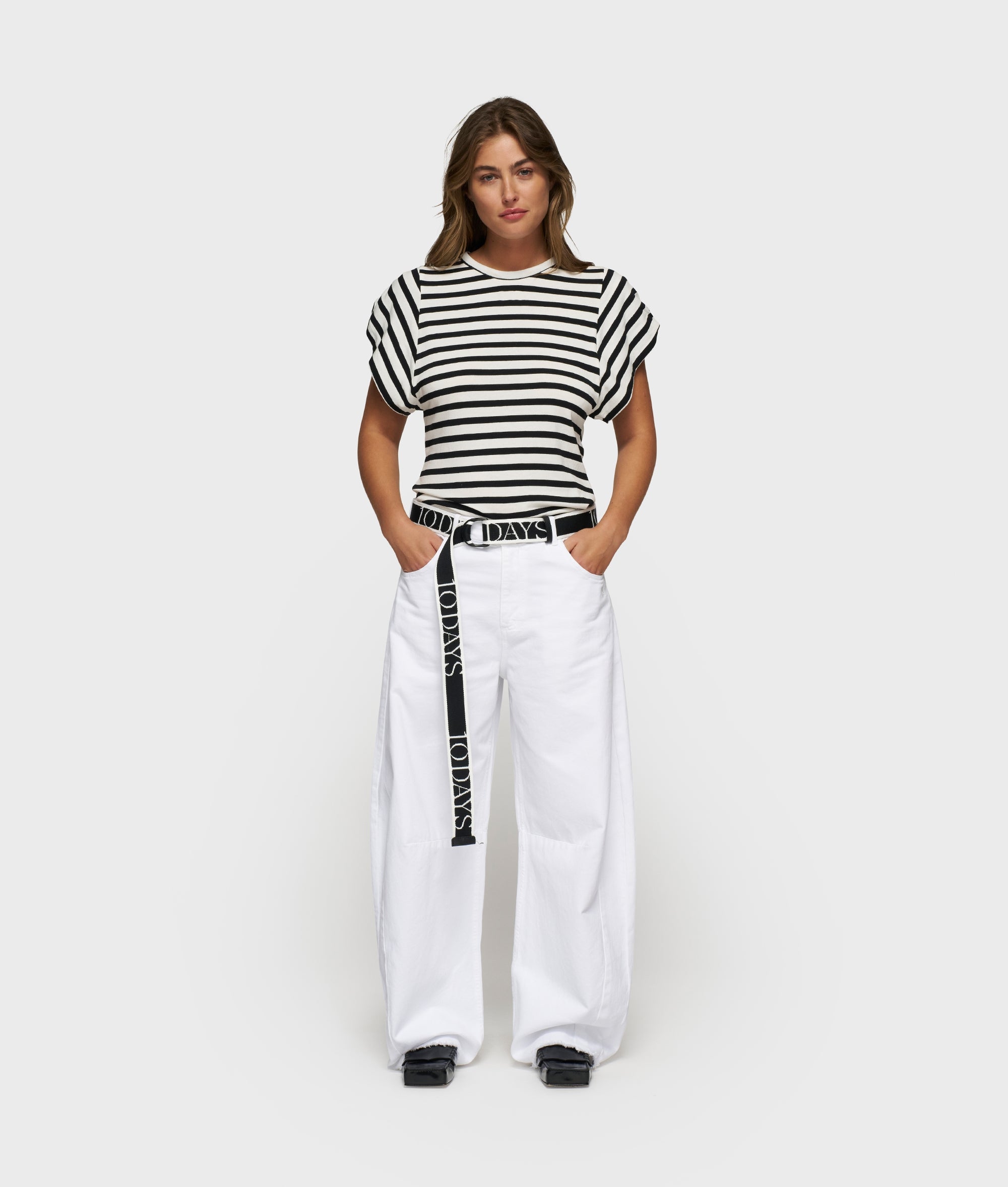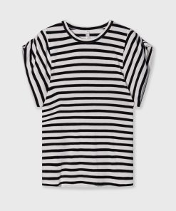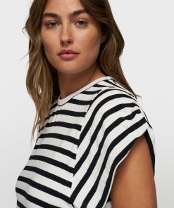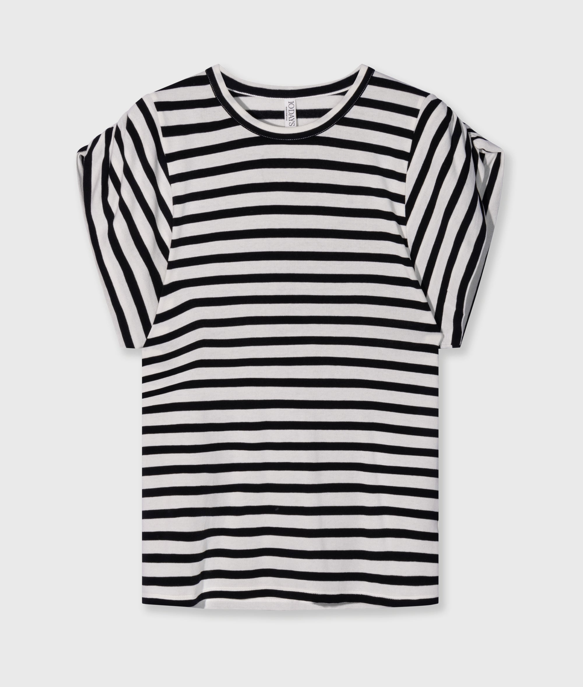 10DAYS Women’s Strong Shoulder Tee Modal Stripes | Ecru/black | Ecru & Black