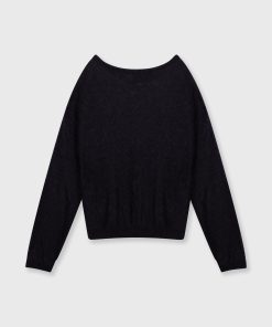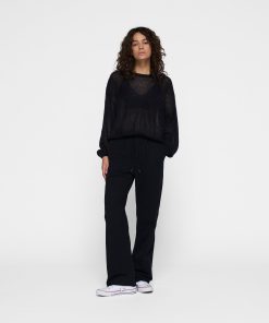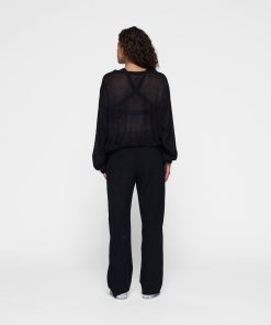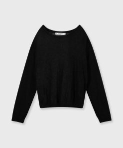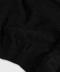 Relaxed fit semi-transparent knitted sweater, made of a fine alpaca and merino wool blend. Features a rib knitted round neck, cuffs and hem and a mini stripes logo on the back.|