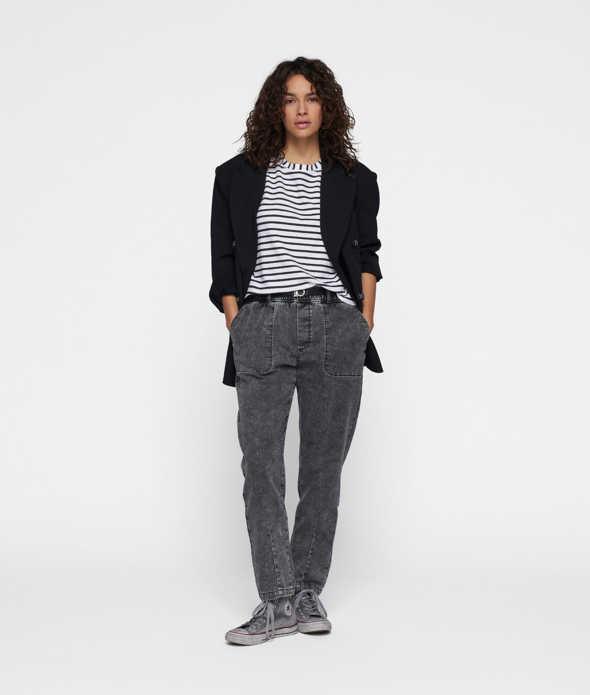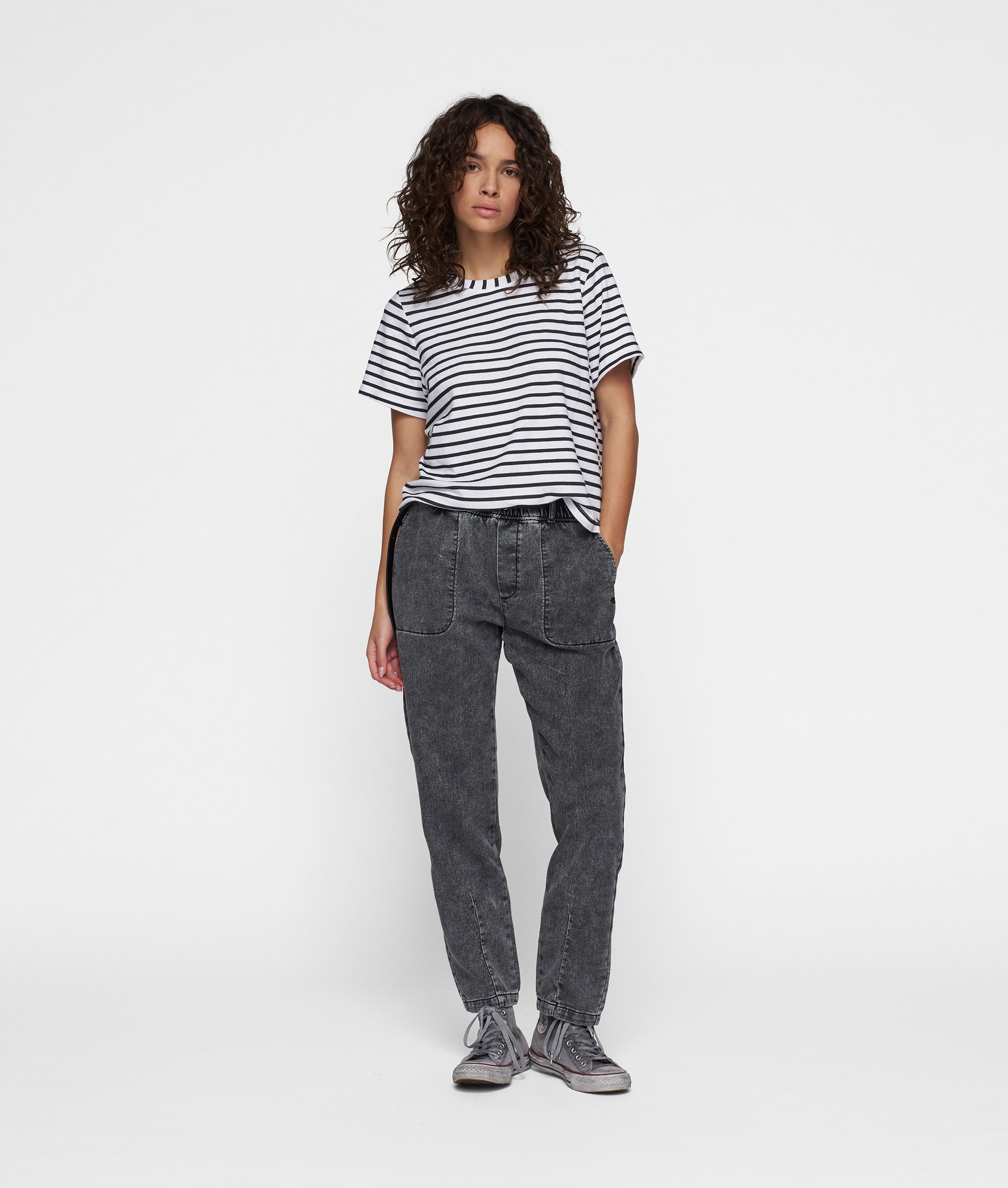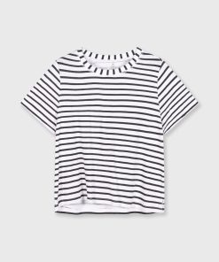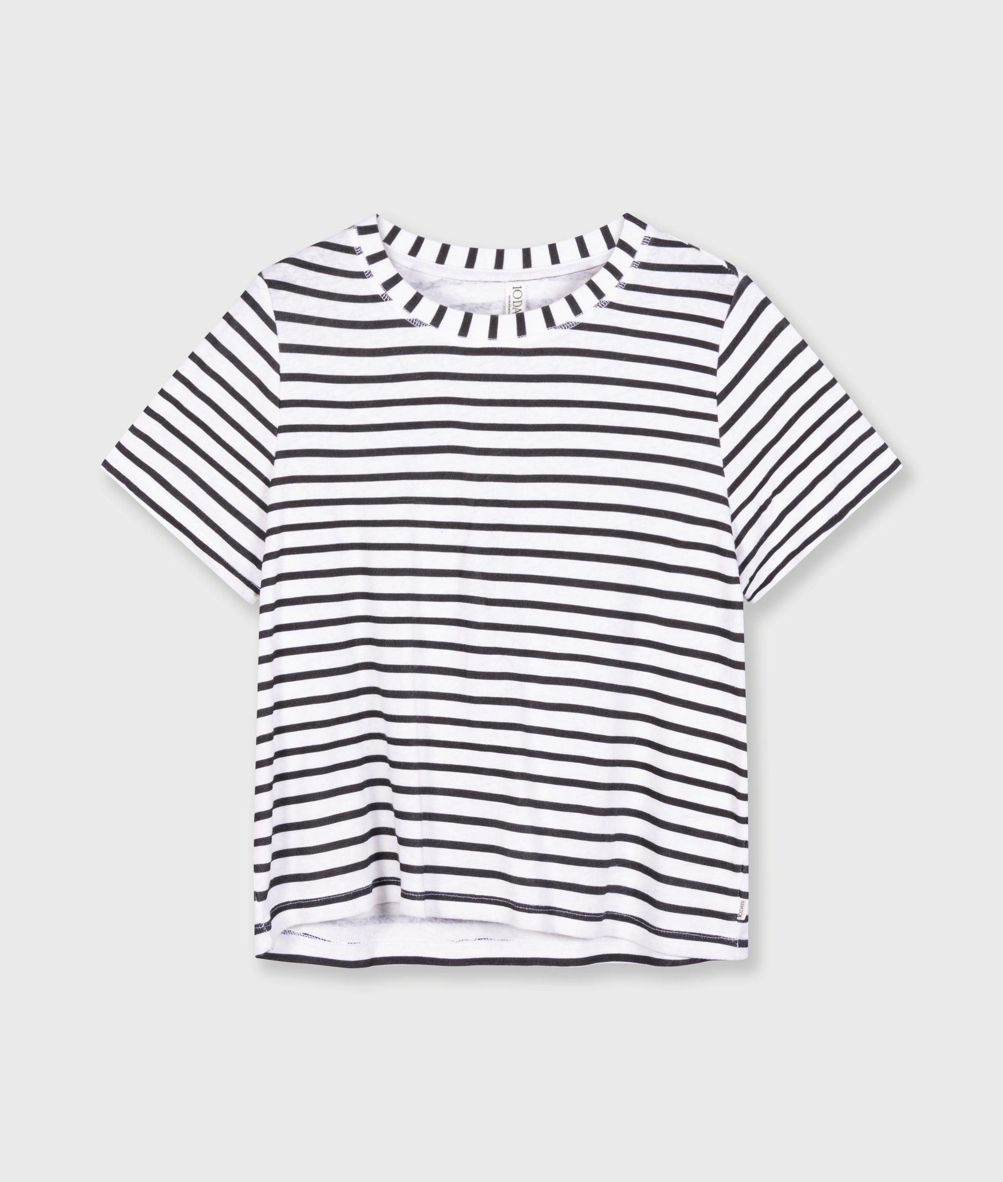 10DAYS Women’s The Petite Tee Linen Stripes | White/black | White & Black