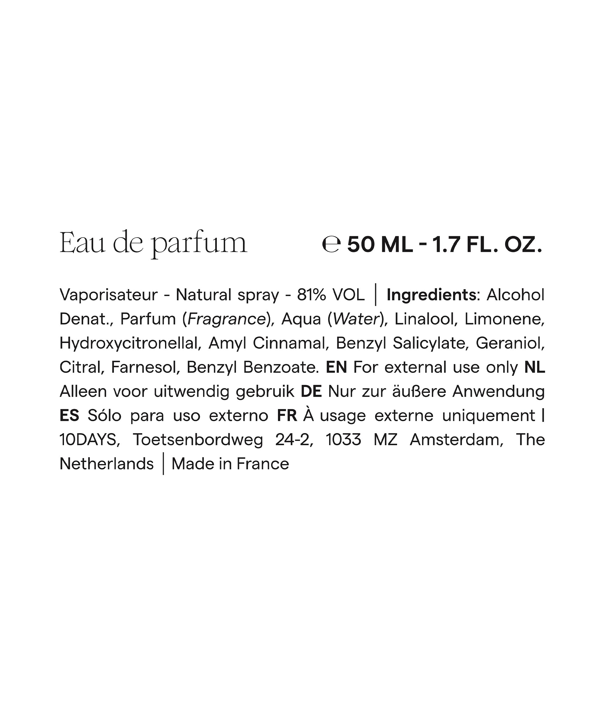 UNEXPECTEDLY – 50ML unisex eau de parfum from 10DAYS. Free-spirited and energetic. It is a tribute to the persuit of dreams, a scent for those who dare to live outside the conventional and embrace the extraordinary. The perfume can be used individually as well as layered with the SIMPLE fragrance. TOP NOTES: Bergamot, tangerine, petit-grain & bitter orange. MID NOTES: Grapefruit flower, ylang-ylang & orange blossom accord. BASE NOTES: Warm sand accord and Caledonian sandalwood.|