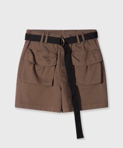 Regular fit utility shorts made from jog twill with a mid-rise elasticated waistband. Designed with belt loops and a detachable belt. Detailed with flap pockets with pleat accents, a monogram embroidery on the left flap.|