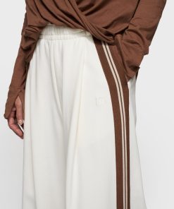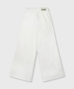 Oversized fit wide leg pants, crafted from soft cotton. Featuring a high waistband with drawstring, slanted front pockets, a faux welt pocket and a deep front pleat. Finished with striped tapes along the side seams, belt loops and the 10′ monogram embroidery on the left side. Note: Due to the use of multiple fabrics, this garment needs extra care after washing. Find more info on how to take care of your garment at the washing instructions.|