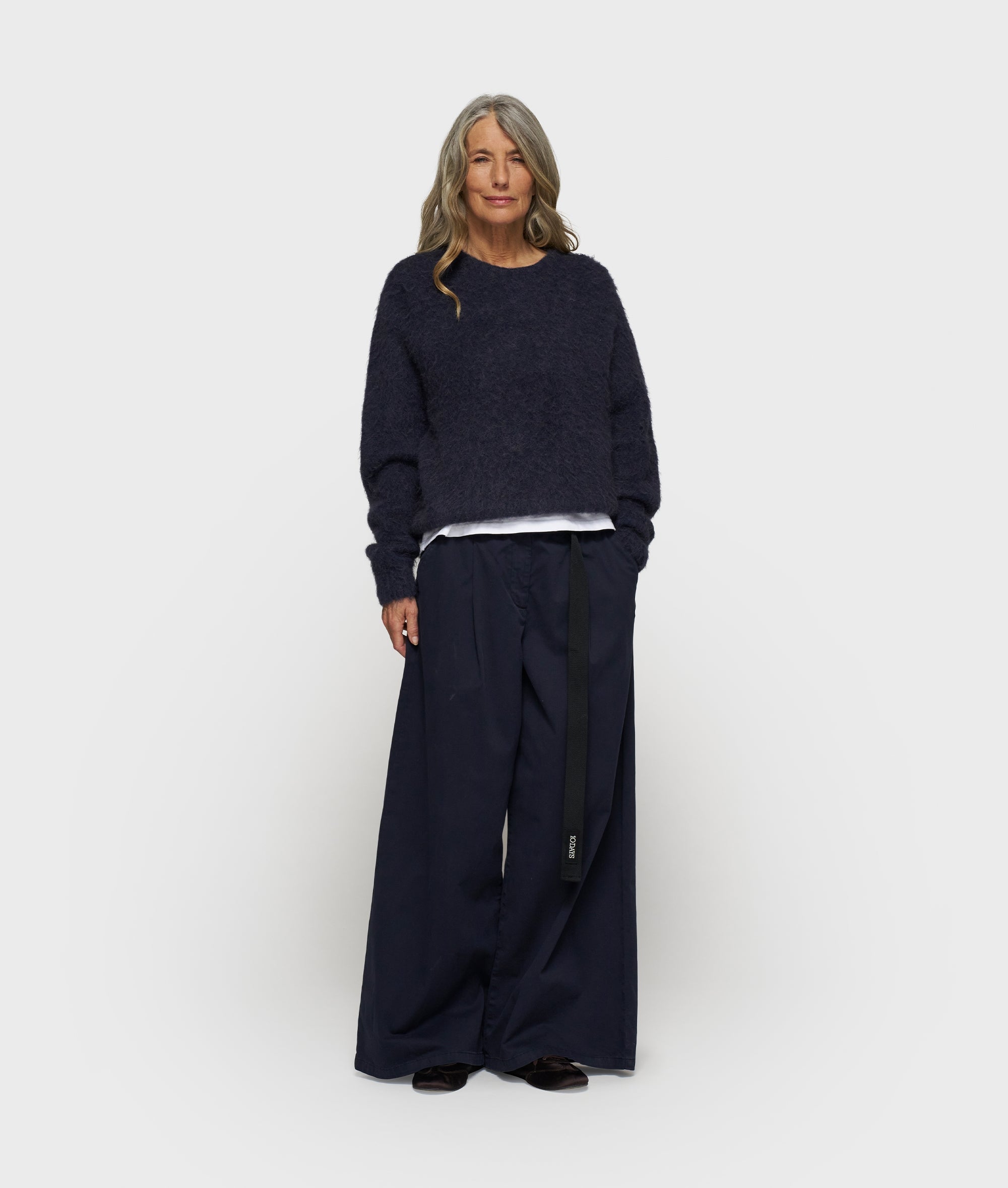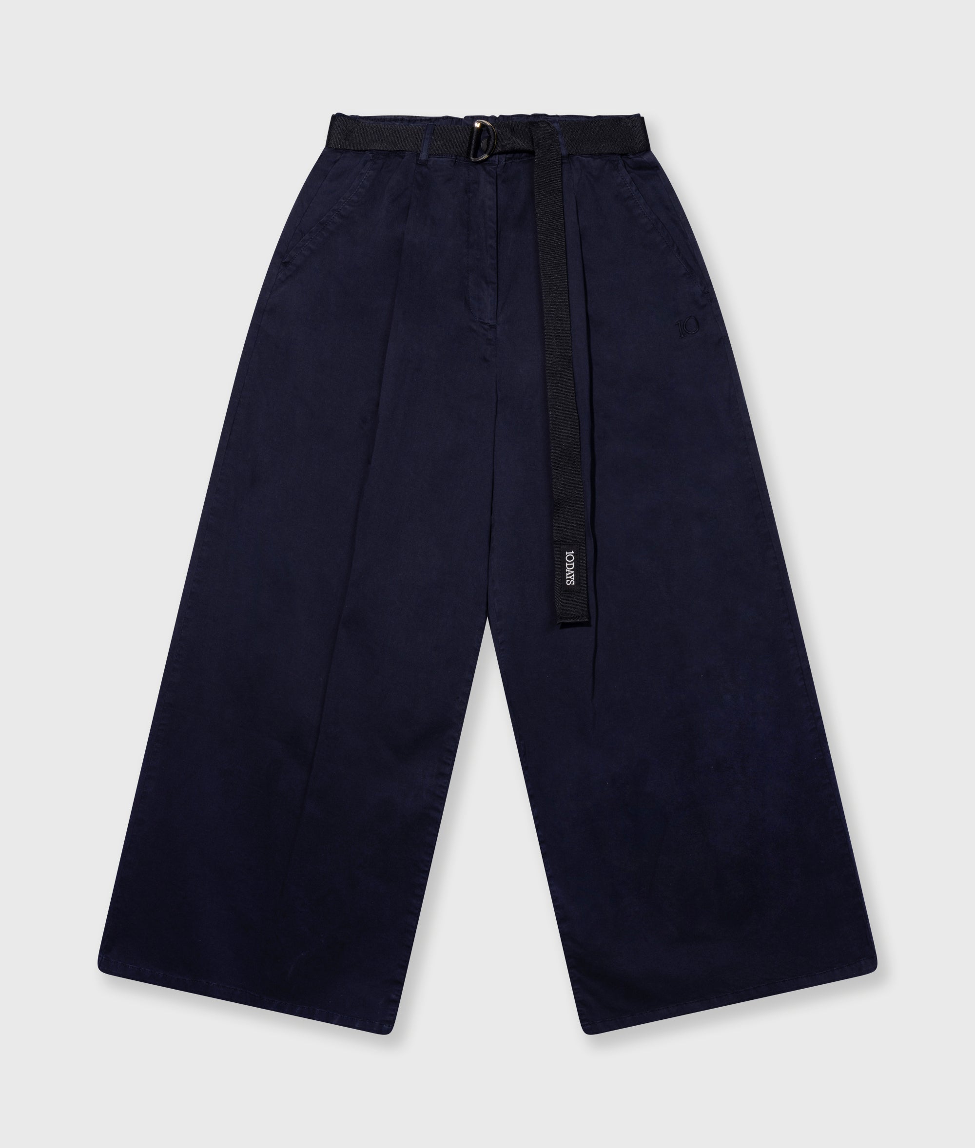 Regular fit trousers with wide legs, made from GOTS-certified organic cotton. Designed with an elasticated waistband with cotton belt, slanted front pockets and a ’10’ monogram logo embroidery below the left front pocket. Additional accessory material: 100% cotton|