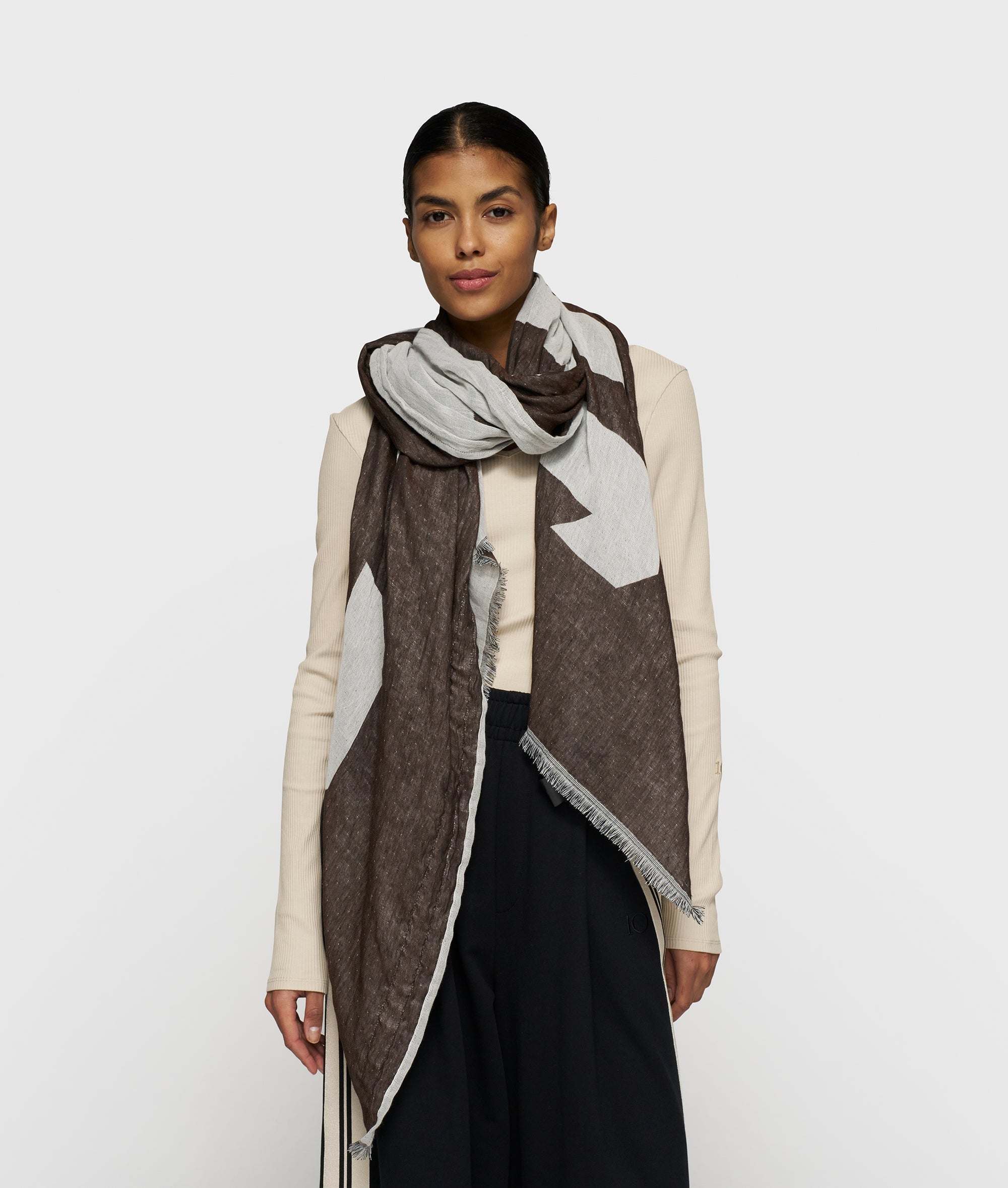 Scarf with jacquard ’10DAYS’ logo, made from light cotton crepe. Features small fringes and a 10DAYS label along the hem. Size: 105 cm x 220 cm.|