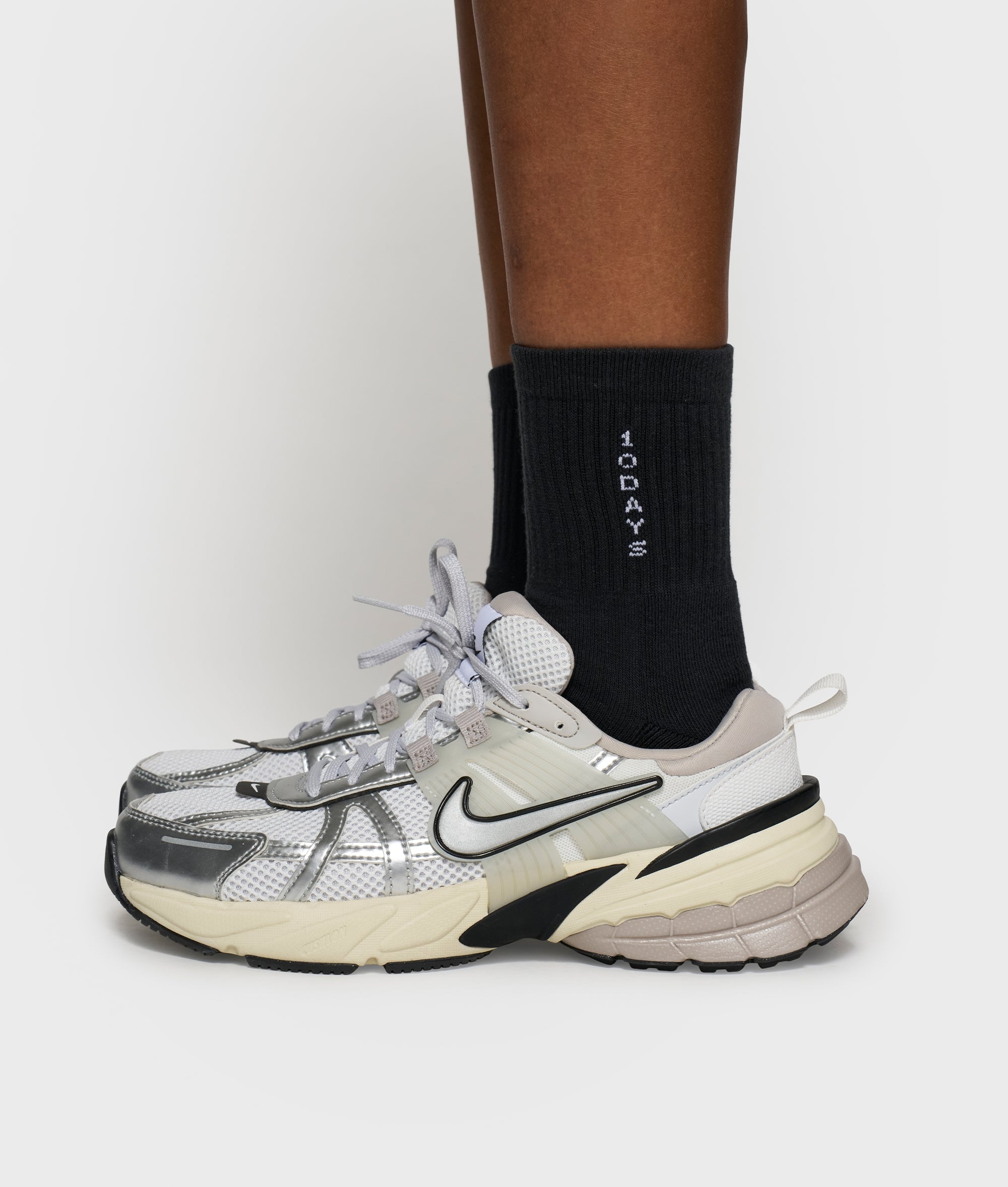 Rib-knit socks with a ’10DAYS’ logo at the side and on the sole. Designed with a ribbed hem and shiny lurex details in silver.|